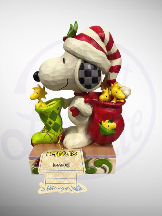 Jim Shore Peanuts - Prepping for Santa Snoopy Woodstock Figurine (No Box)